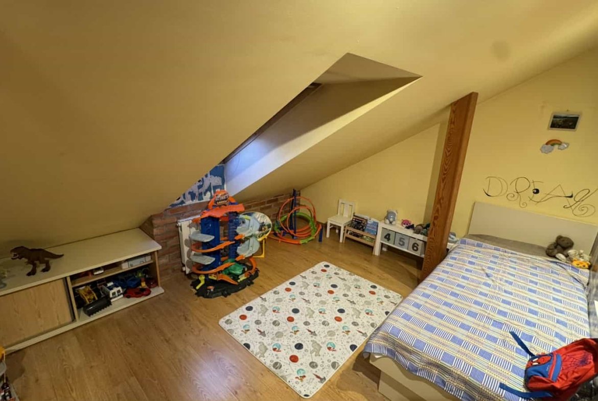 Virš antro aukšto įrengta antresolė (lofto tipo erdvė) – vaikų žaidimų kambarys.