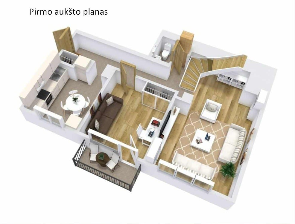 Butas išsiskiria funkcionaliu išplanavimu ir aiškiai atskirtomis zonomis.