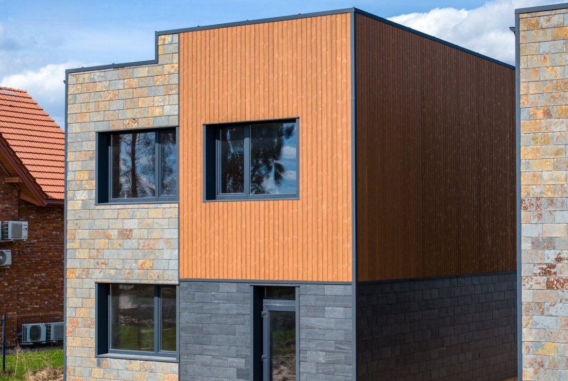 Ventiliuojama fasado apdaila Skalūnas ir deginta mediena