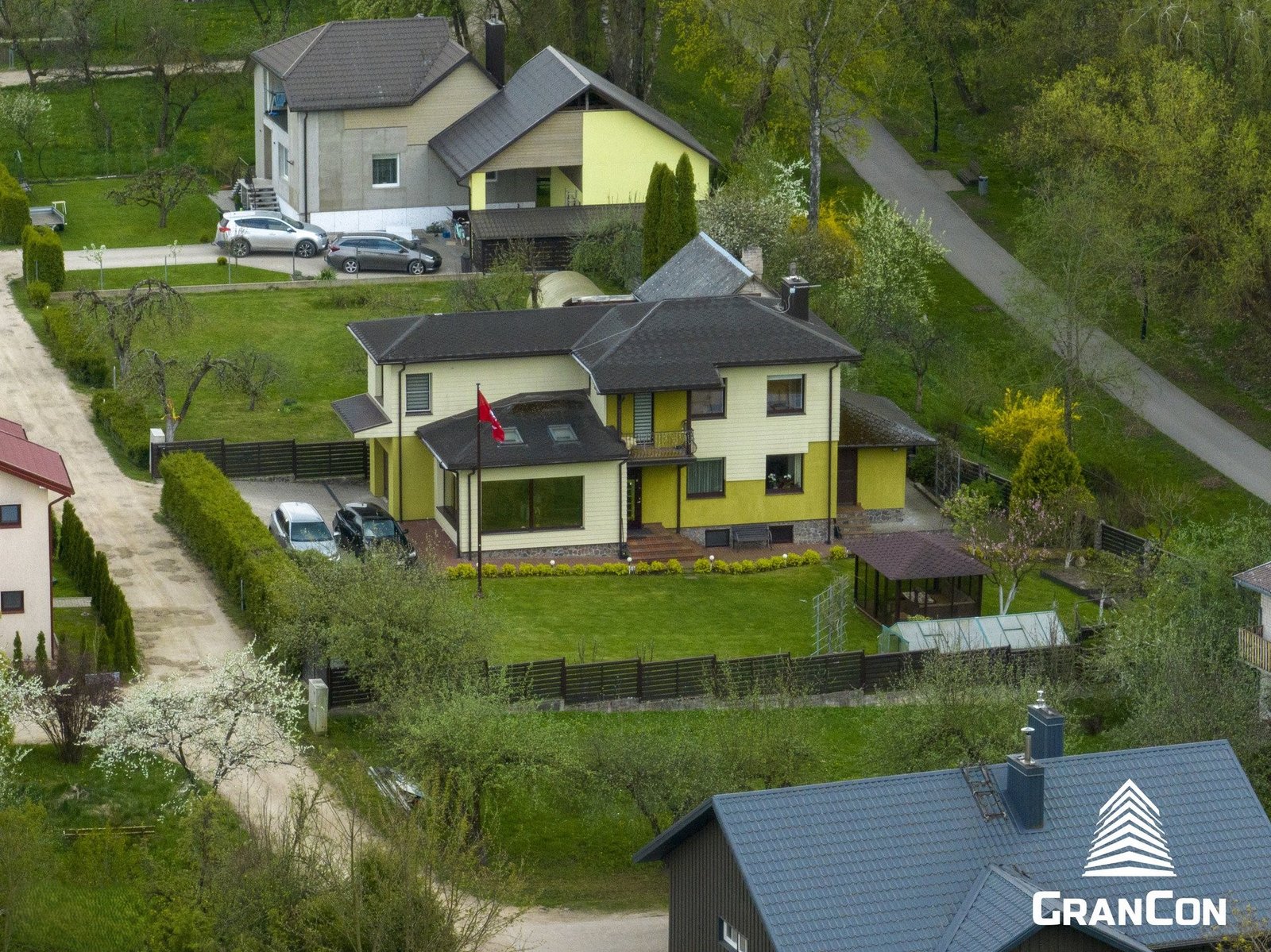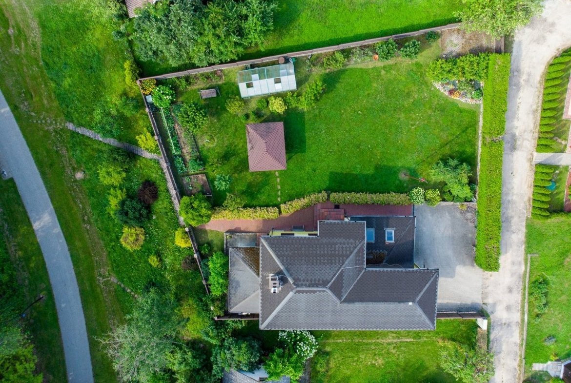 Erdvus, gražiai sutvarkytas, su dviem įvažiavimais – patogu tiek šeimininkams, tiek svečiams.