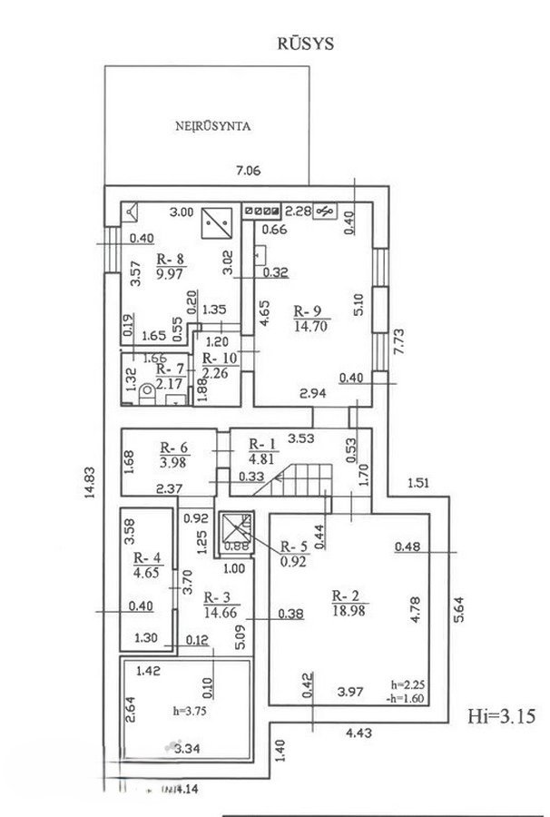Dviejų aukštų su rūsiu.