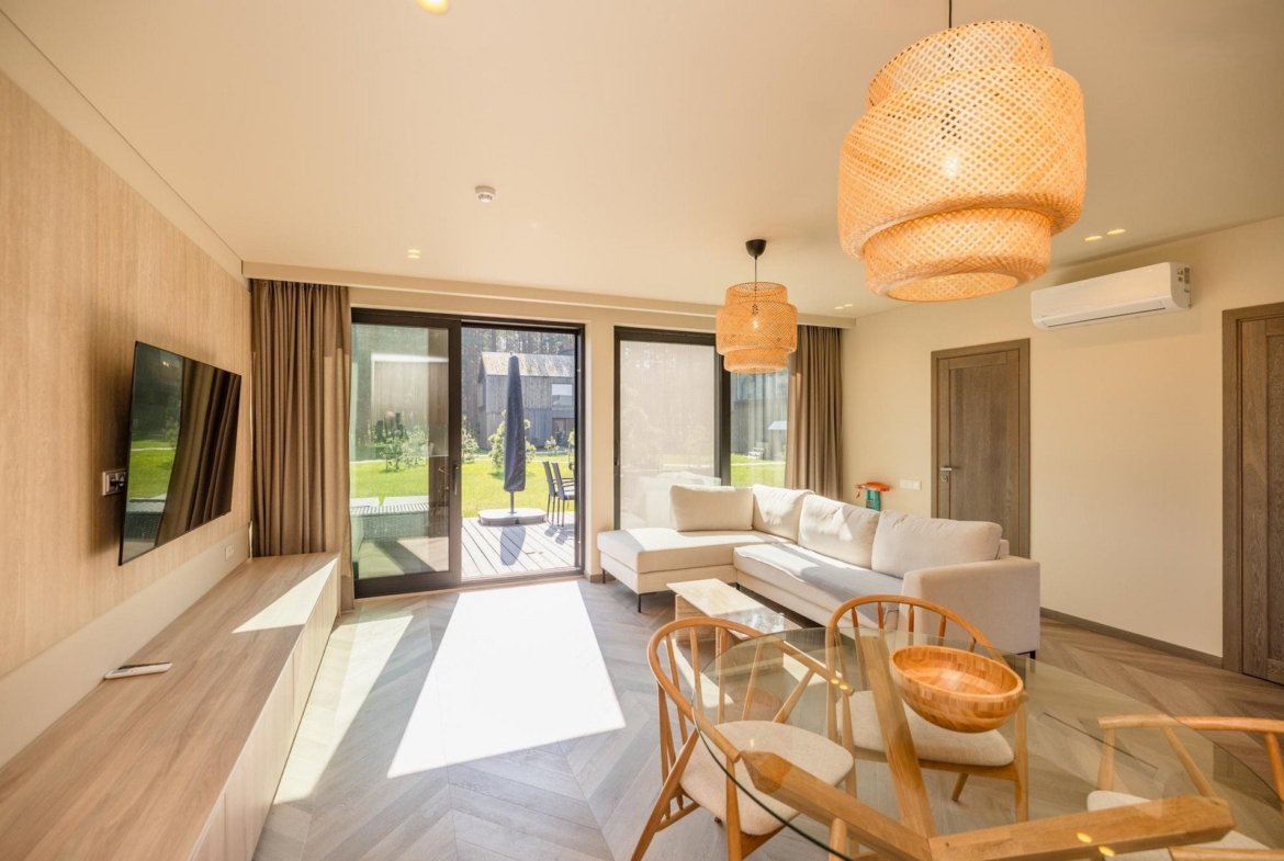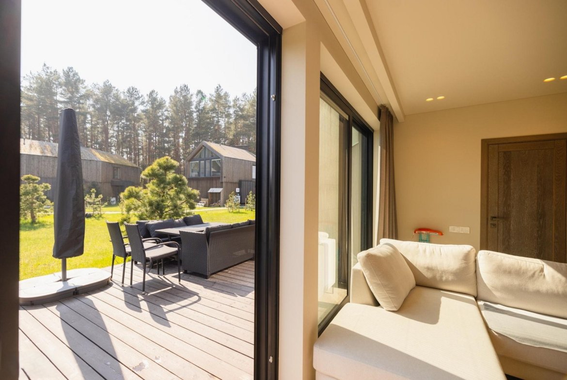 • Degintos medienos fasadas, terasa, gultai su čiužiniais