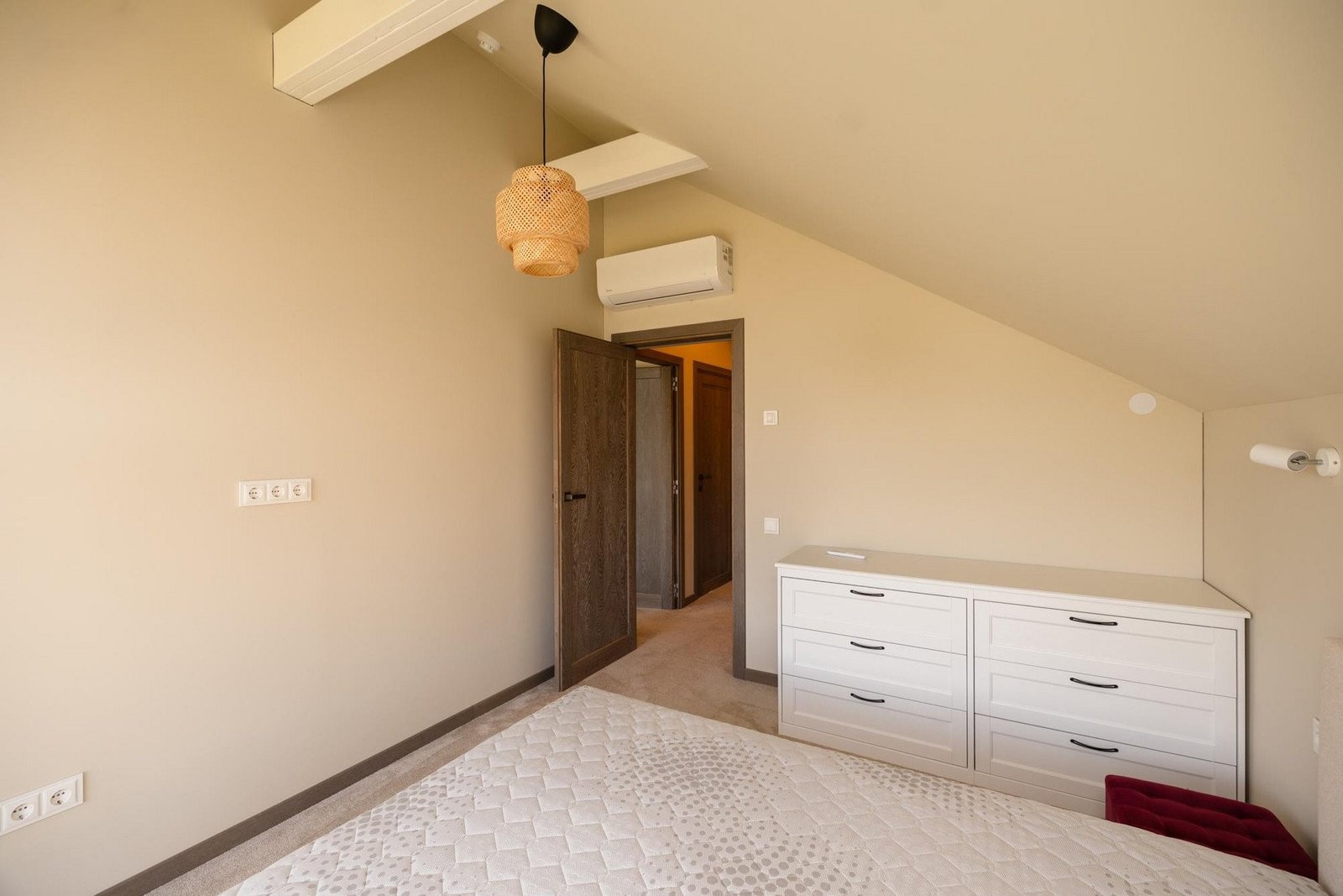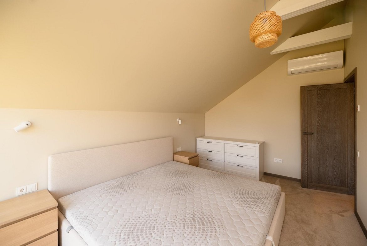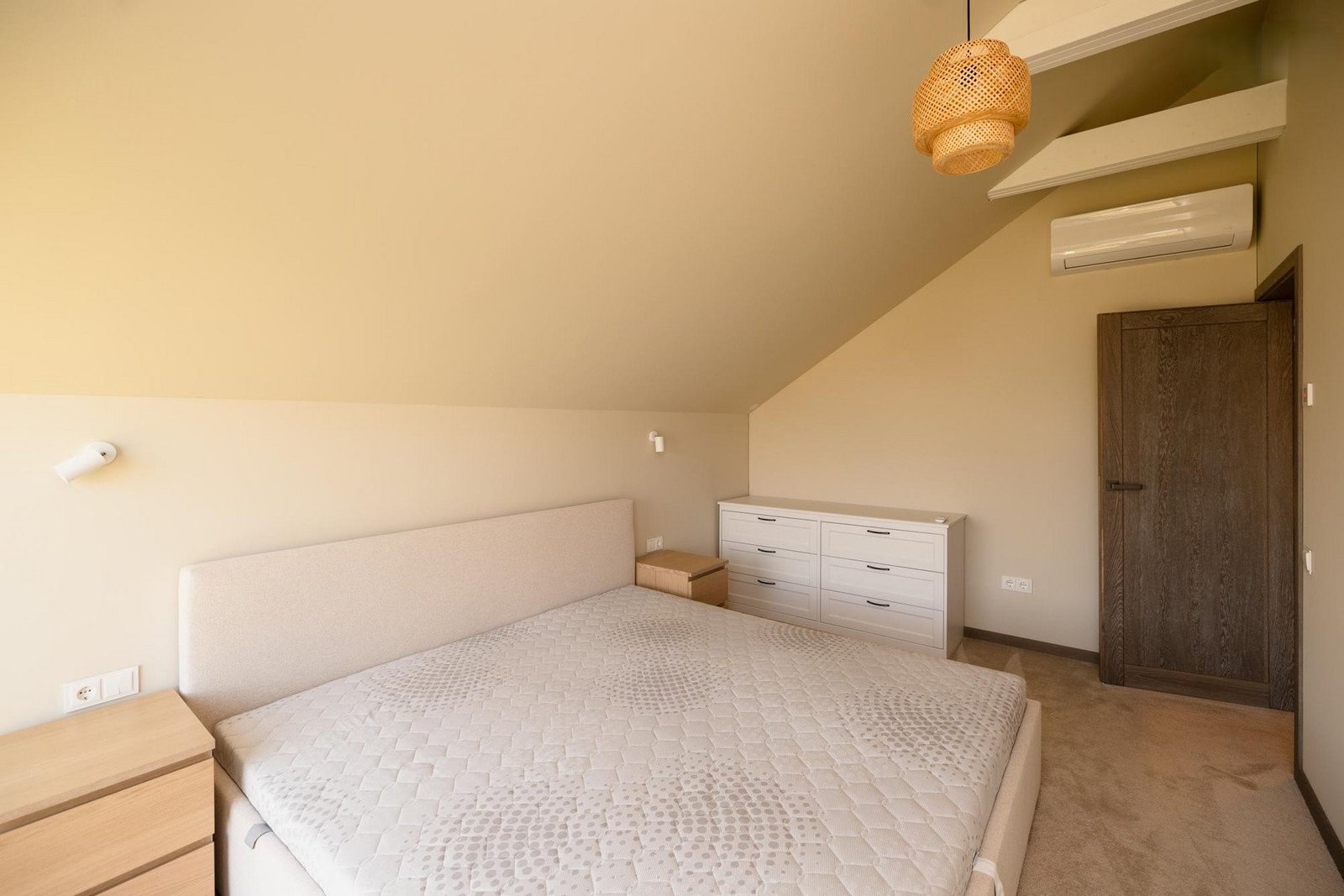 2 aukštas – du erdvūs miegamieji su plačiomis lovomis, vonia su dušu, tambūras su skalbimo zona