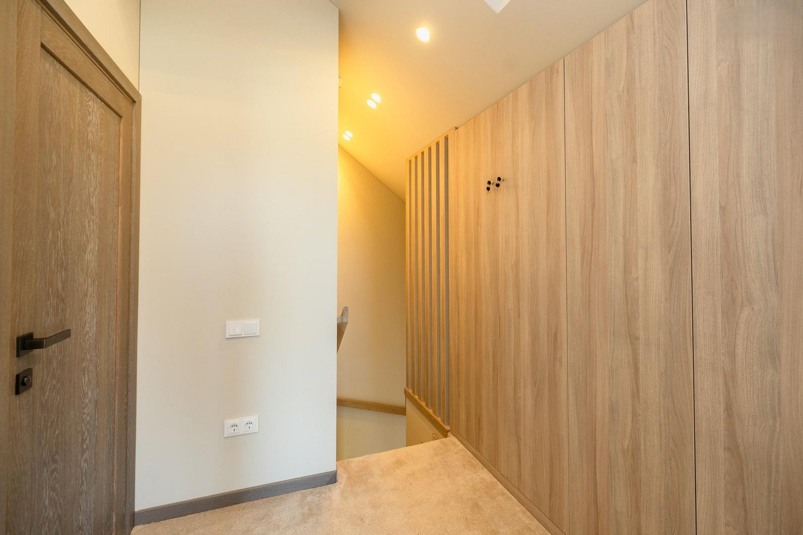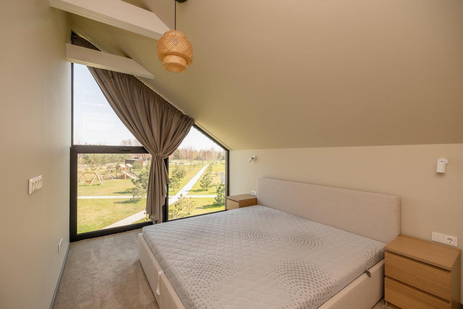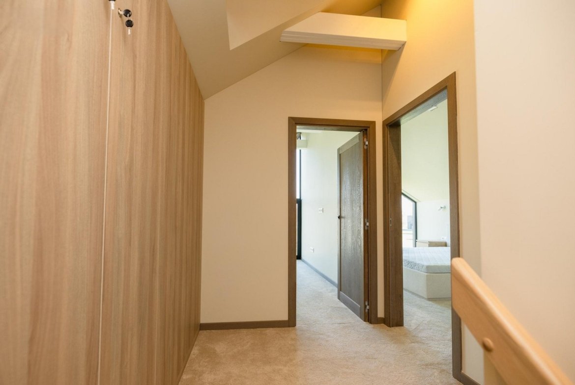 2 aukštas – du erdvūs miegamieji su plačiomis lovomis, vonia su dušu, tambūras su skalbimo zona