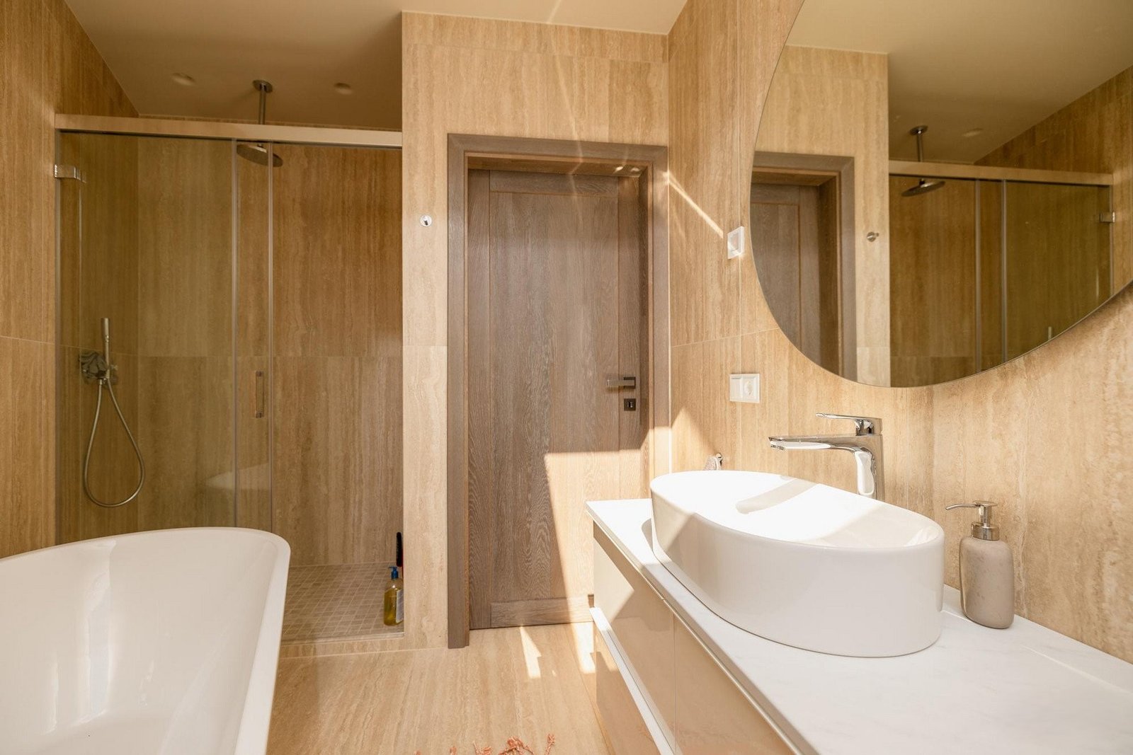 • „Villeroy & Boch“ plytelės, „Grohe“ potinkiniai dušai