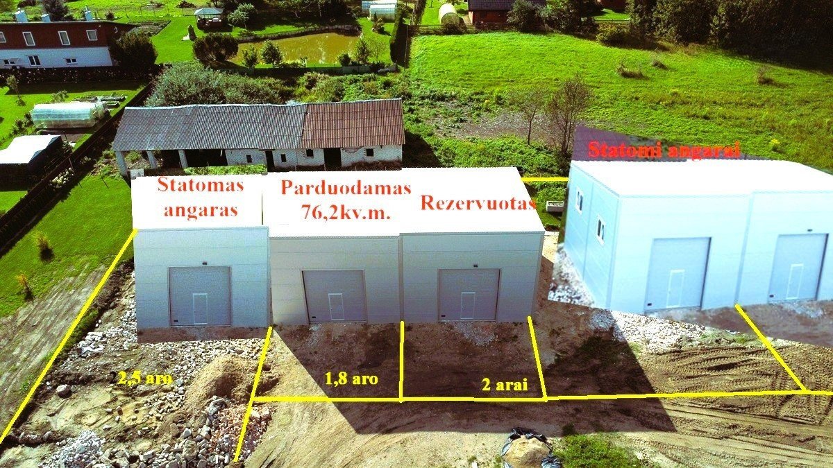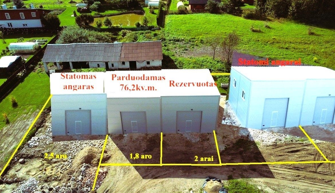 Nuomuojami naujos statybos, kompaktiški angarai, tinkantys sandėliavimui, gamybai, paslaugų veiklai ar kitai komercinei veiklai. Pastatyti iš 10 cm storio sandvičo plokščių, metalo karkaso, su 4 m aukščio vartais ir iki 7 m siekiančiomis lubomis.