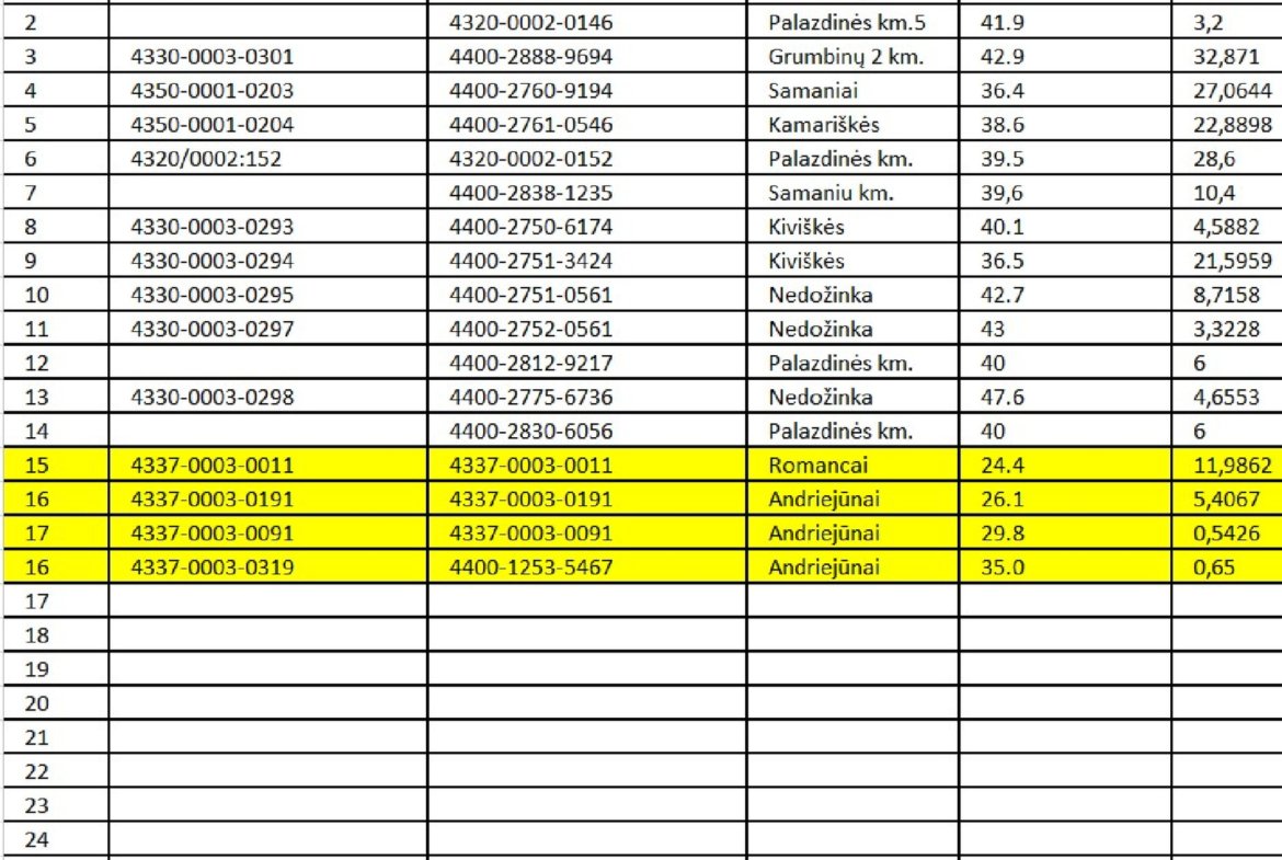 Iš viso parduodami 16 atskirų sklypų (su atskirais unikaliais numeriais).