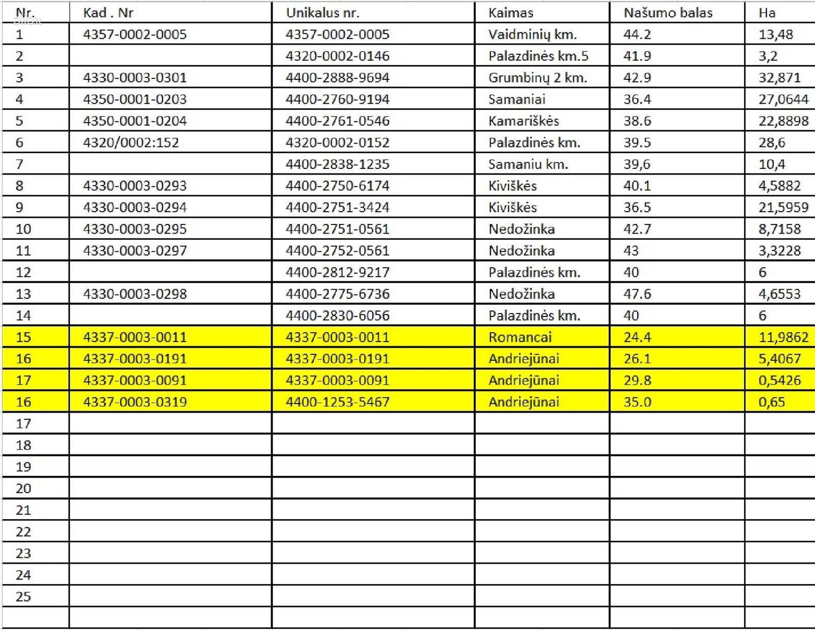 Privalumai Sklypai dirbami, tvarkingi, tinkami ūkininkavimui, plėtrai ar investicijai
