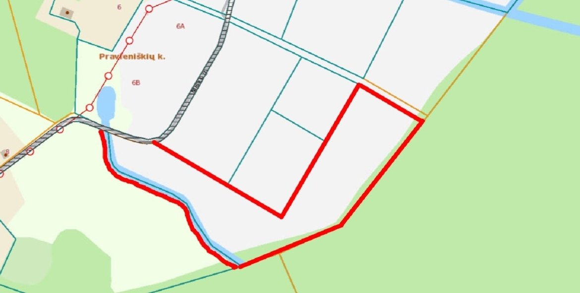 Sklypas yra ramioje ir gražioje vietoje. Jo 208 metrai kraštinės ribojasi su mišku. Miškas, esantis šalia sklypo, yra brandus ir mišrus, suteikiantis nuostabią aplinką gyvenimui gamtos apsuptyje. Palei sklypo ribą teka nedidelis upelis, kuris dar labiau išryškina šio krašto grožį.