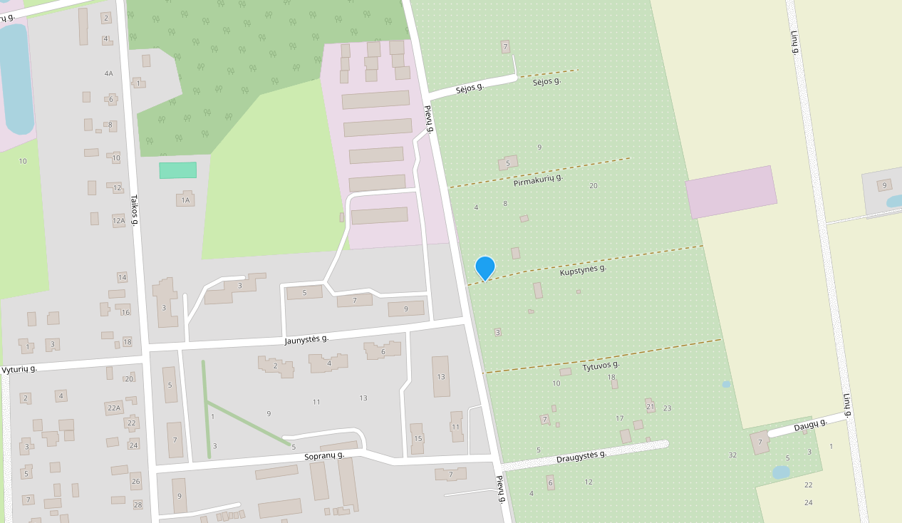 Paskirtis: sodų, daržų, žemės ūkio. Pagal Kauno rajono bendrąjį planą galima keisti į namų valdą (vienbučių–dvibučių statybai).