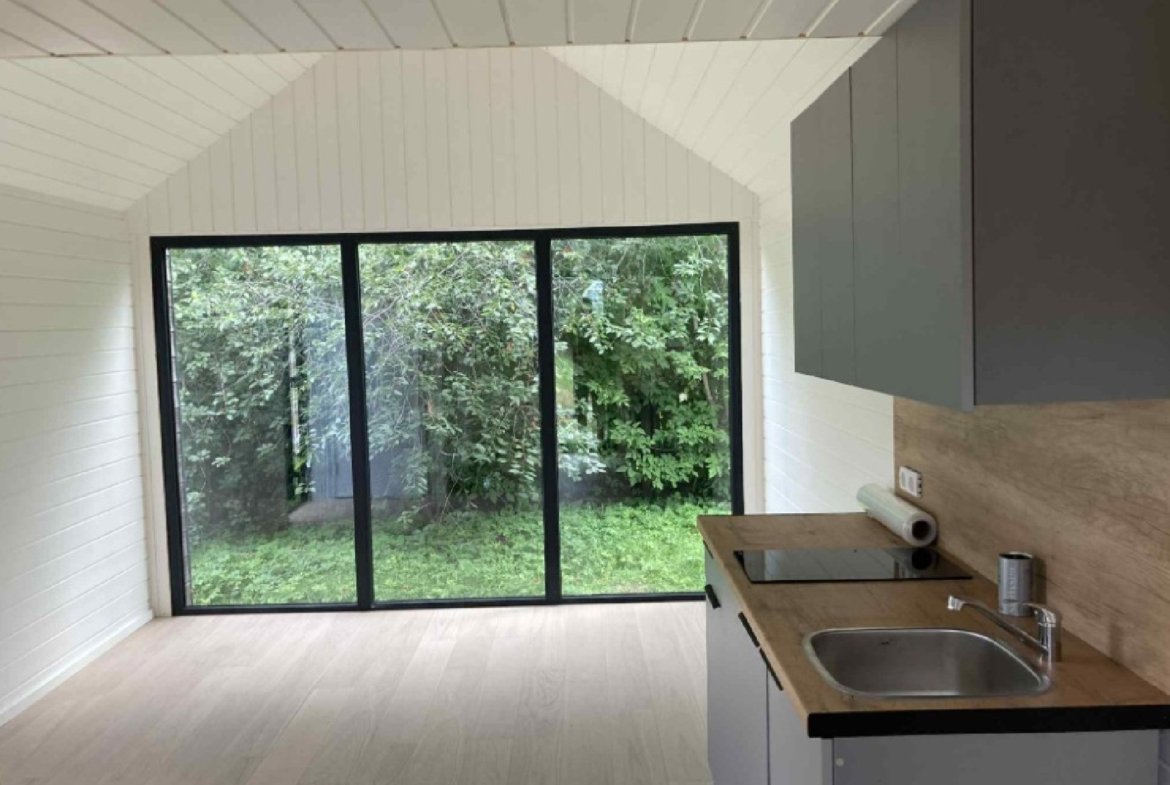 Galite įsigyti visiškai naują, pilnai įrengtą modulinį namelį, tinkamą gyvenimui.