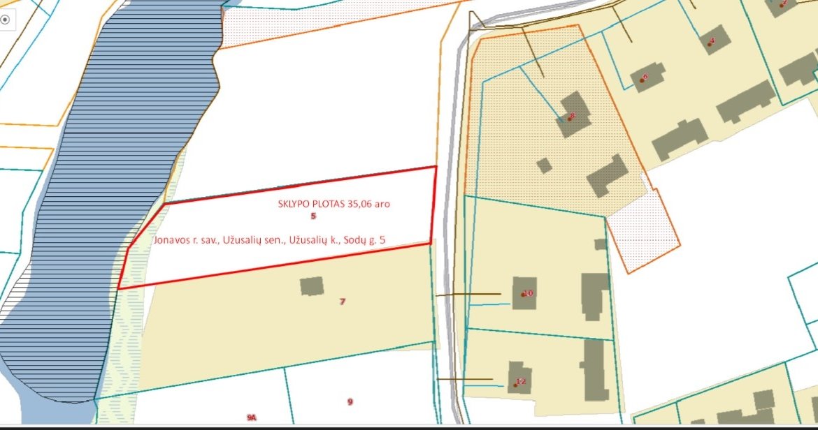 Sklypas su tvenkinio pakrante Užusaliuose, namų valda 35,06 a